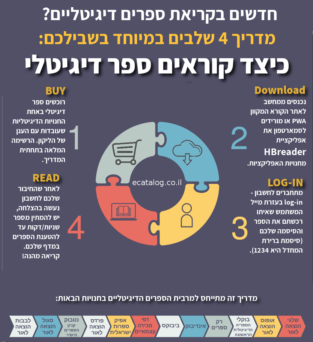 כאשר רוצים לקרוא ספר, קודם כל יש לרכוש את הספר מאחת החנויות המופיעות בקטלוג זה (לכל ספר יוצגו קישורים לחנויות בהן ניתן לרכוש אותו).